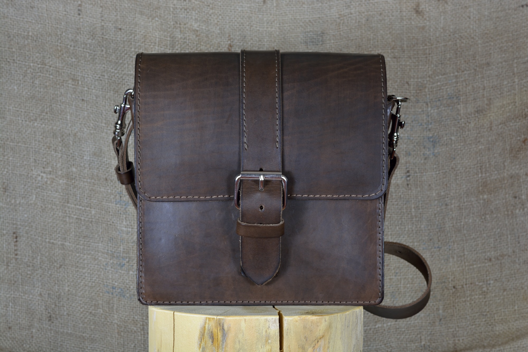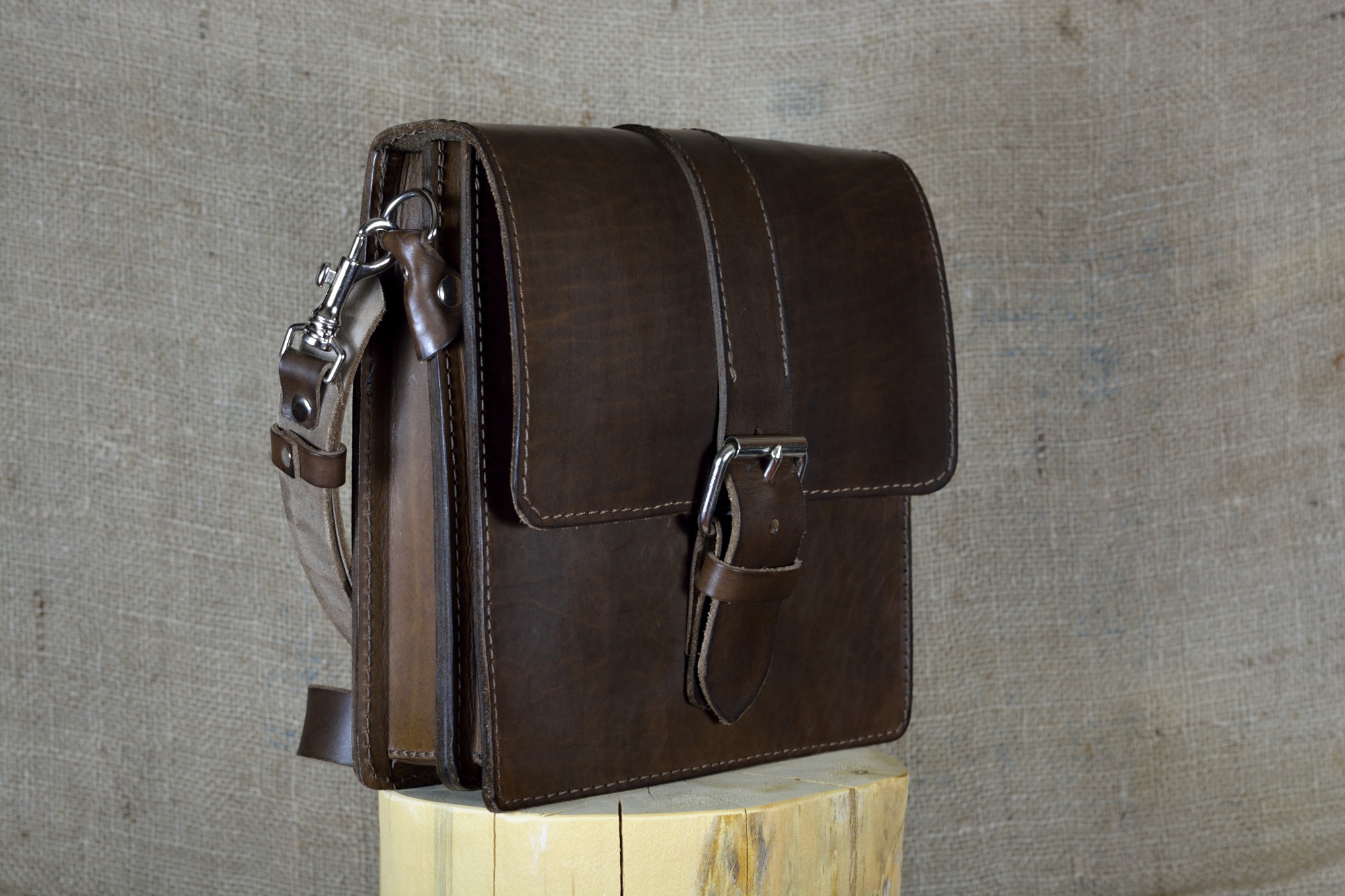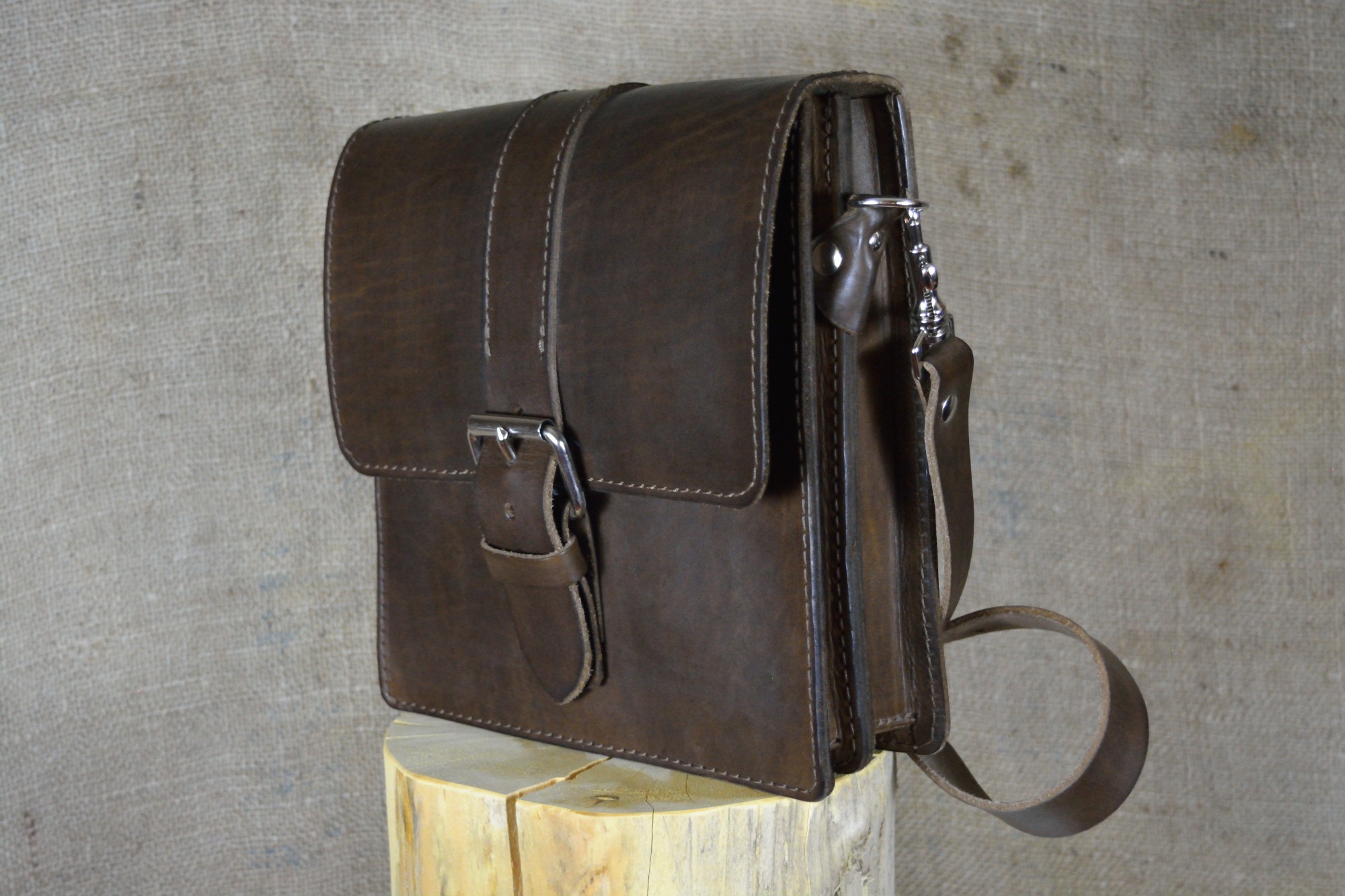 Pánská kožená brašna Hádě A5 - kvalitní pánská kožená brašna vyrobená z pravé hovězí kůže - hlazenice, která je ručně barvená. Kožená brašna Hádě je vyrobená z hovězí kůže tlusté 2,5 mm a řemen brašny o šířce 3 cm je vyroben z hovězí kůže tlusté 3 mm.