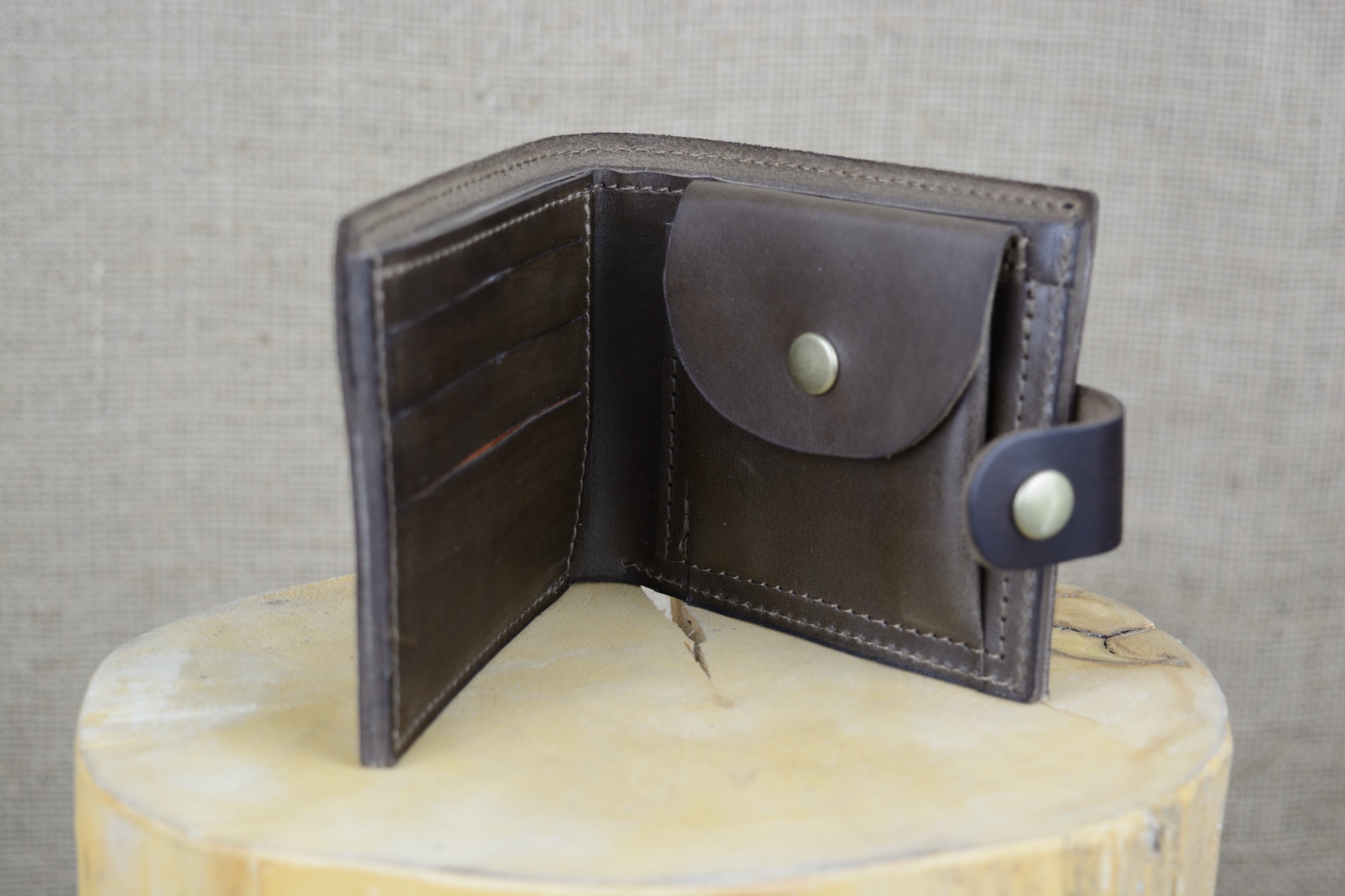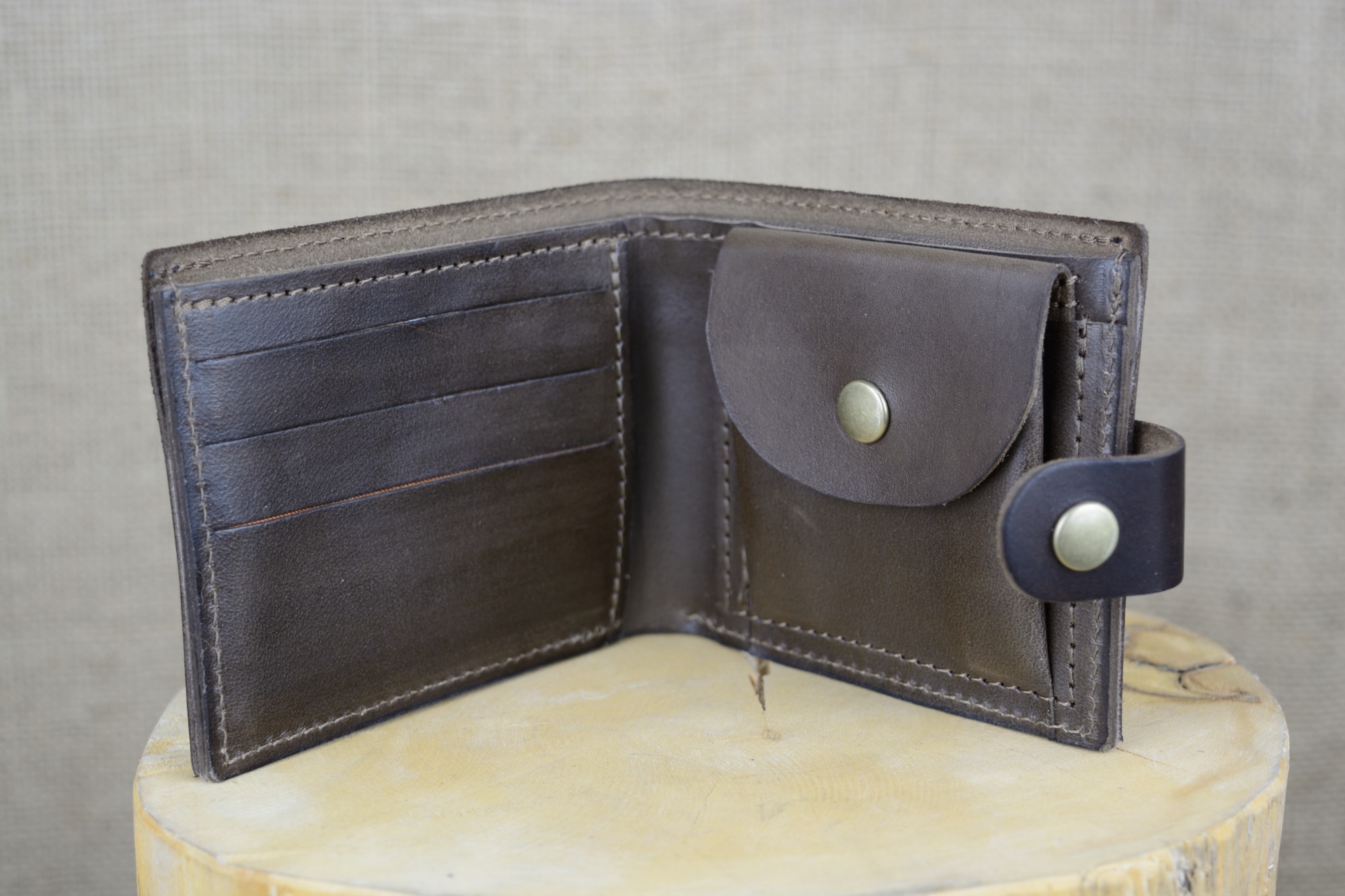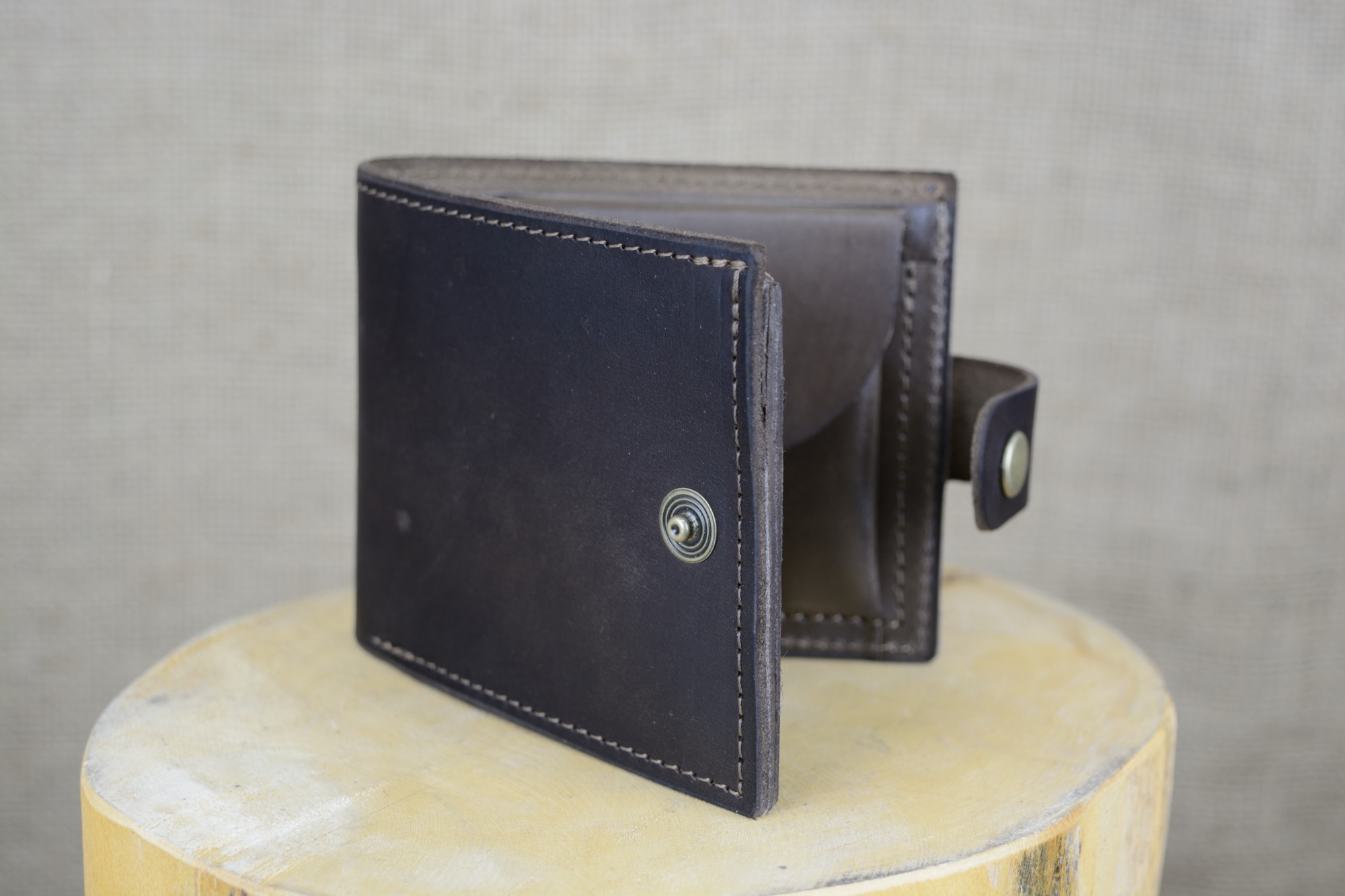 Pánská kožená peněženka Klasik se zapínáním - kvalitní pánská kožená peněženka vyrobená z pravé hovězí kůže - usně. Tato kombinovaná kožená peněženka je velice oblíbená a používá se jak na papírové bankovky, tak i na kovové mince, které jsou uzavřené drukem. Na papírové bankovky má peněženka dvě přihrádky. Krom toho má kožená peněženka Klasik ještě tři přihrádky na karty, nebo vizitky. Vyrábí se z kvalitní hovězí kůže v různých barvách kůže. Celá peněženka se zapíná pomocí poutka na druk.