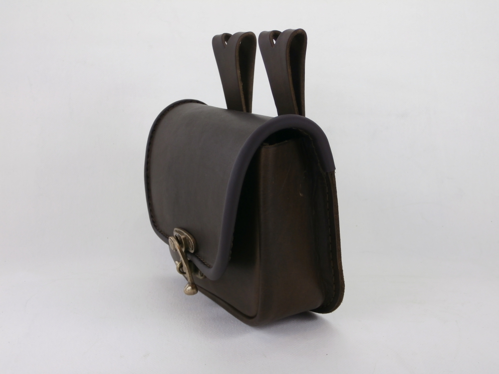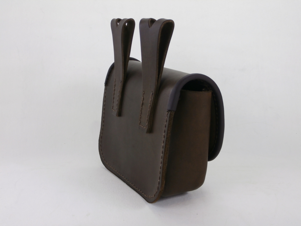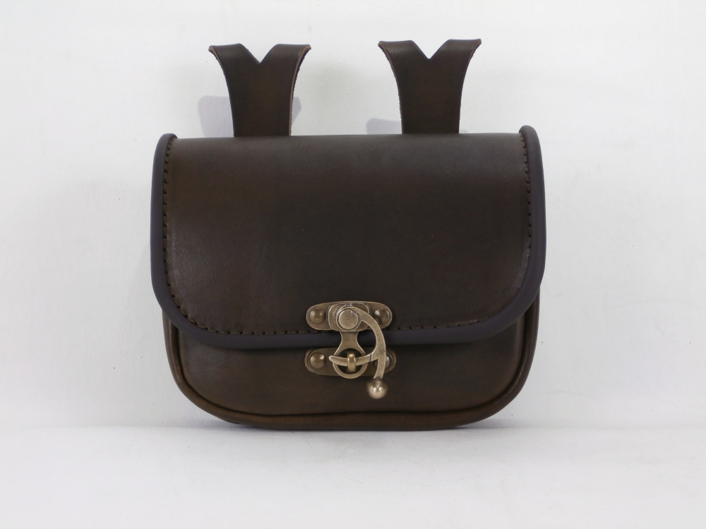 Velká kožená historická tašvice hranatá - kvalitní kožená historická tašvice vyrobená ručně z pravé hovězí kůže. Kožená tašvice má pouze jedno oddělení a zavírání je řešeno koženou klapnou. Klapna se zavírá pomocí kovové kotvičky. Na zadní straně kožené tašvice jsou našity dvě ozdobná poutka pro zavěšení na opasek.