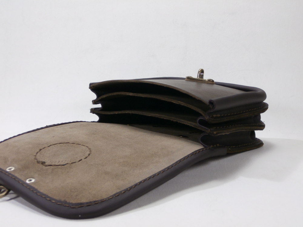Velká kožená historická tašvice trojitá hranatá