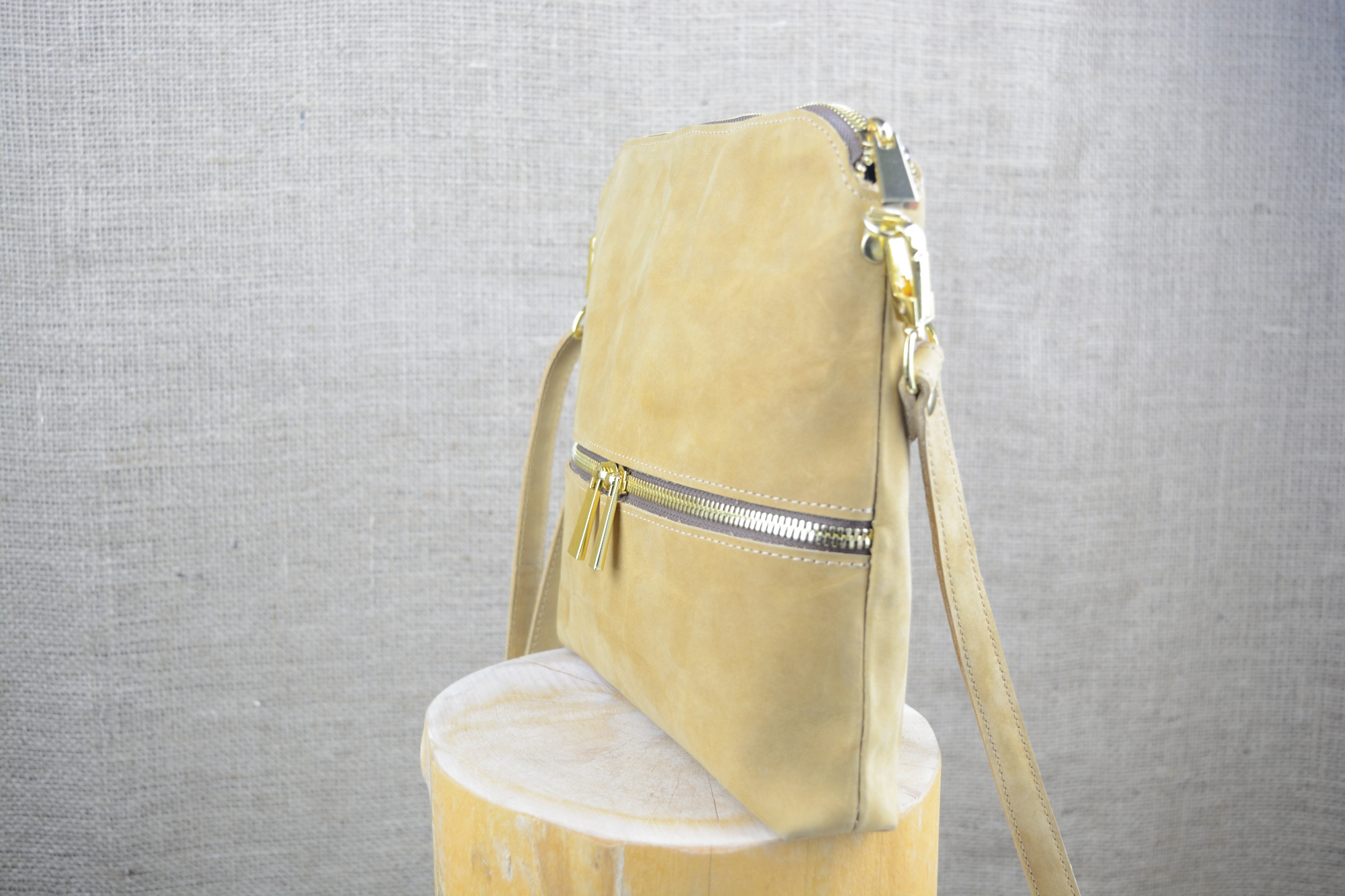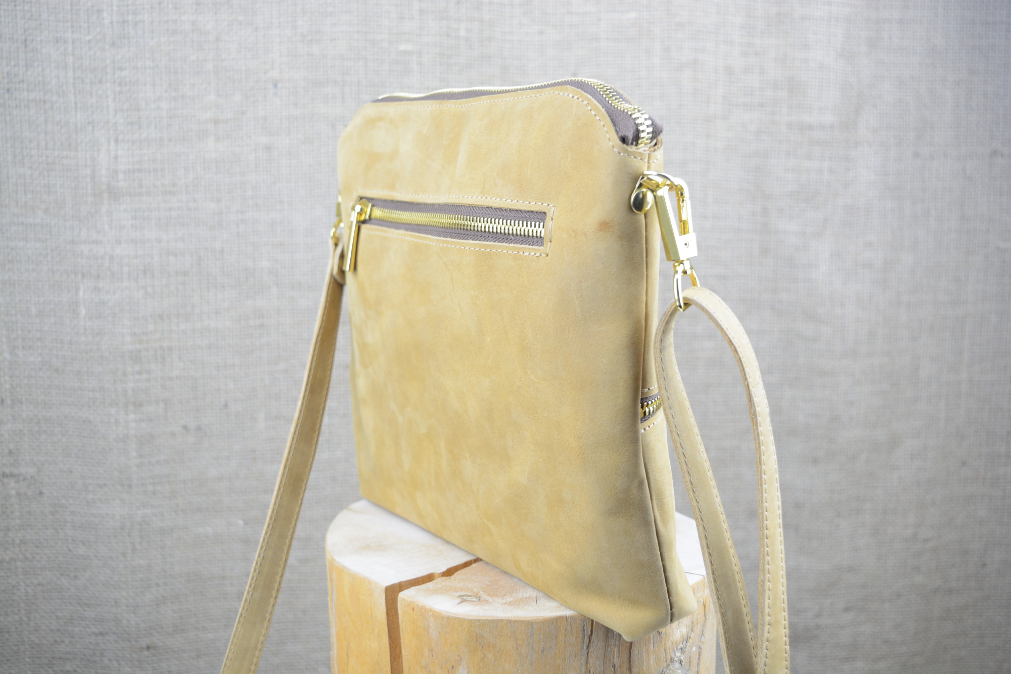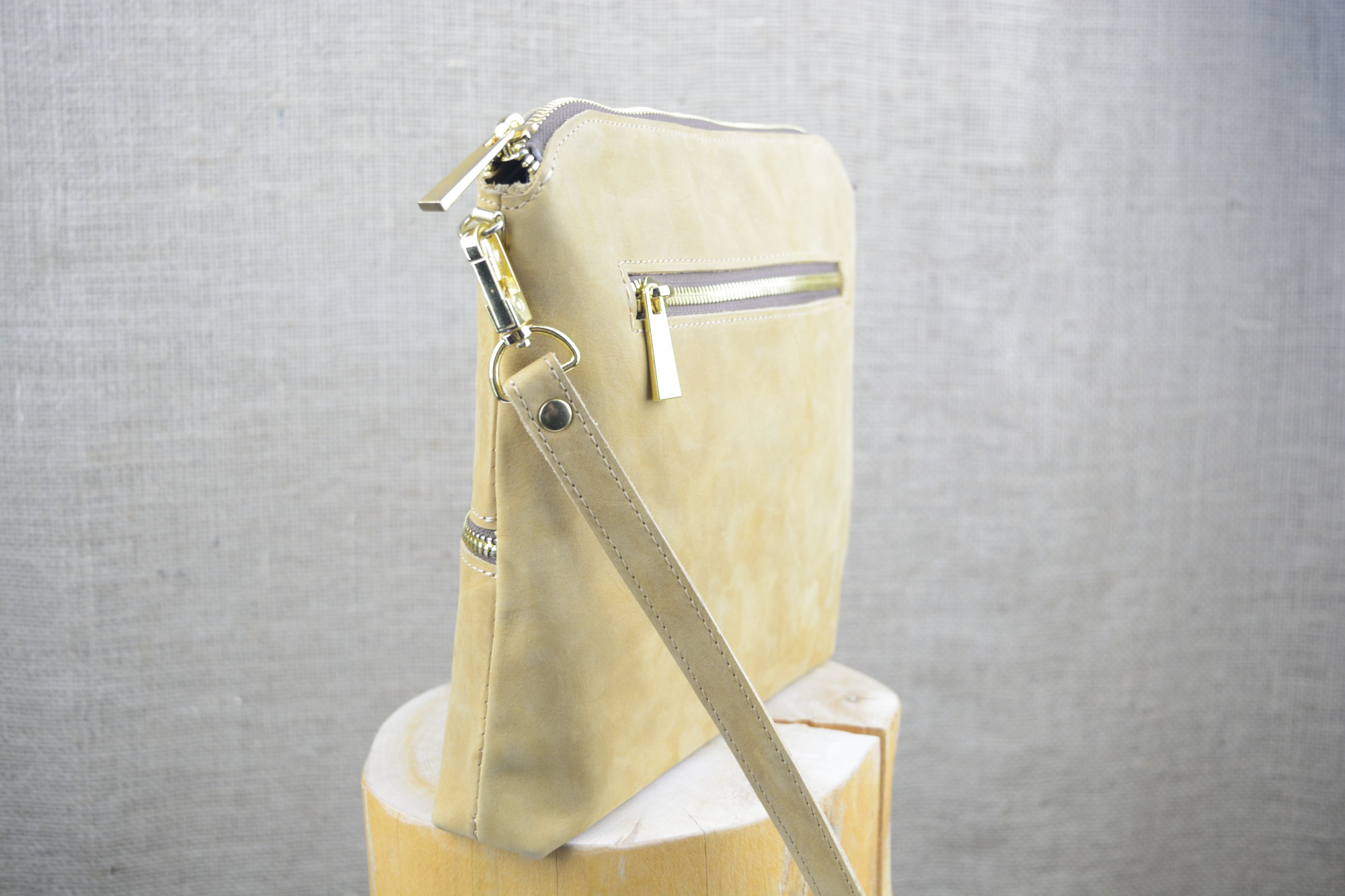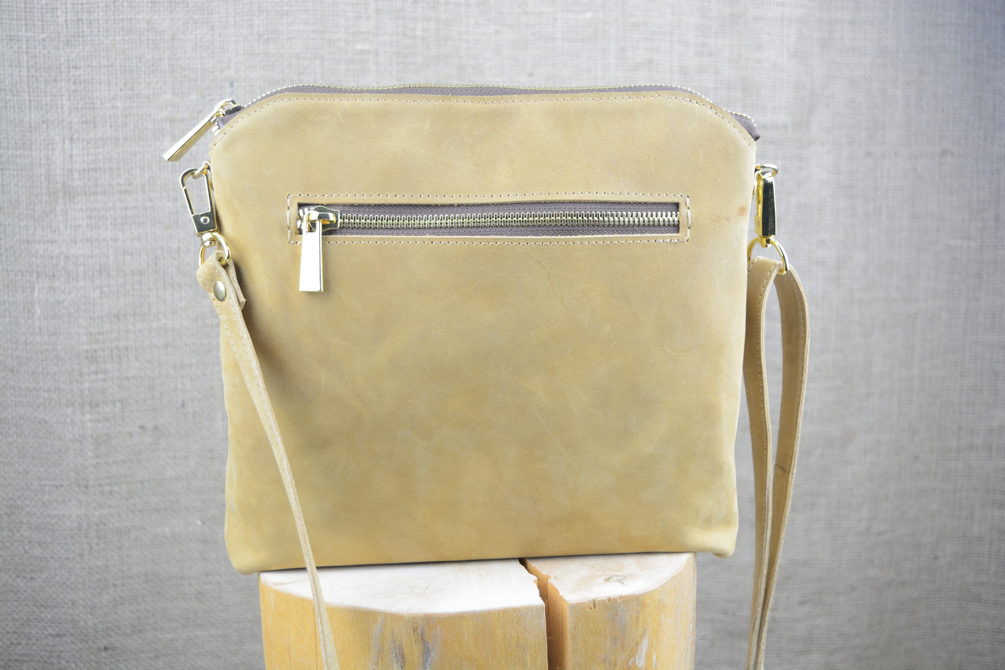Dámská kožená kabelka Anabela A5 - kvalitní dámská kožená kabelka vyrobená ručně z pravé hovězí kůže. Kabelka se uzavíra zipem a zvenčí na předním díle má jednu ozdobnou funkční zipovou kapsu, která se uzavírá na jeden zip se dvěma jezdci. Zvenčí na zadním díle má kabelka ještě jednu zipovou kapsu. Vevnitř má kožená kabelka pouze jedno hlavní hlavní oddělení. Na předním díle hlavního oddělení se nachází dvě kapsy z podšívky na doklady, mobil, klíče a jiné drobnosti.