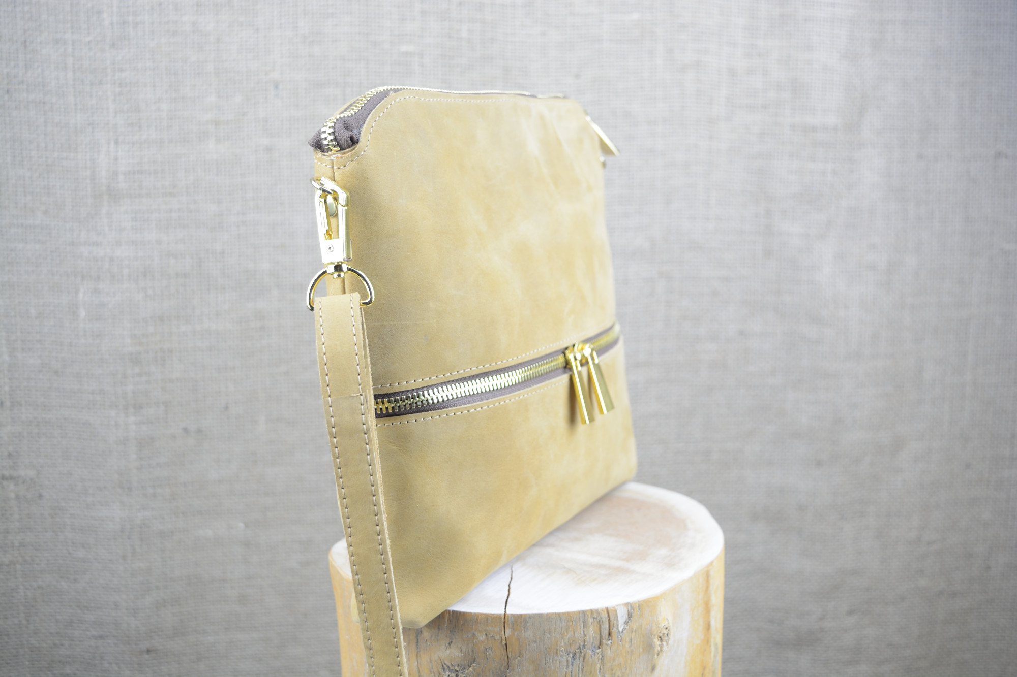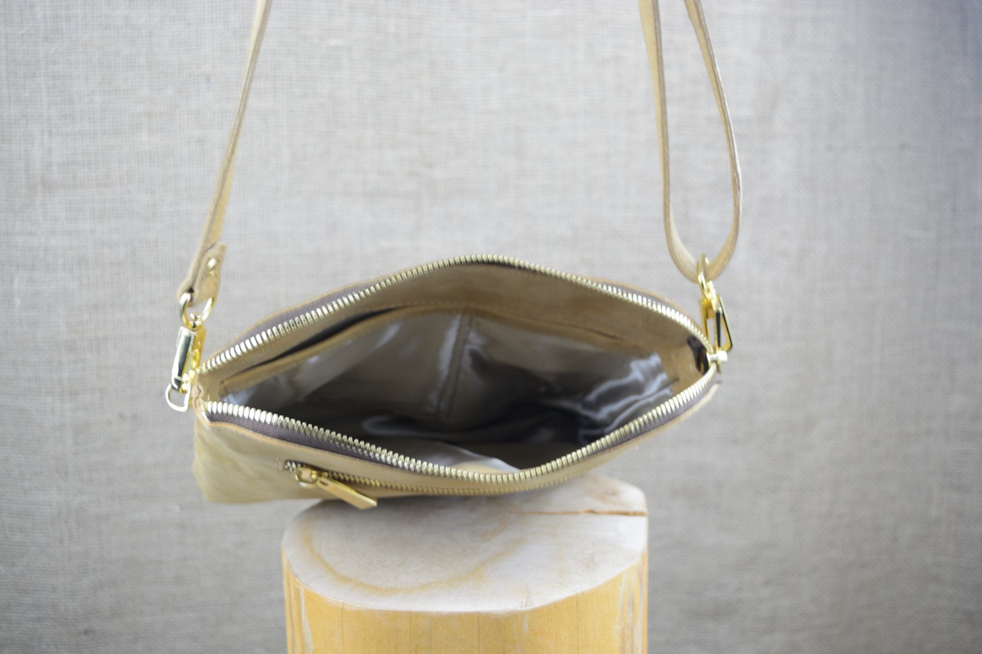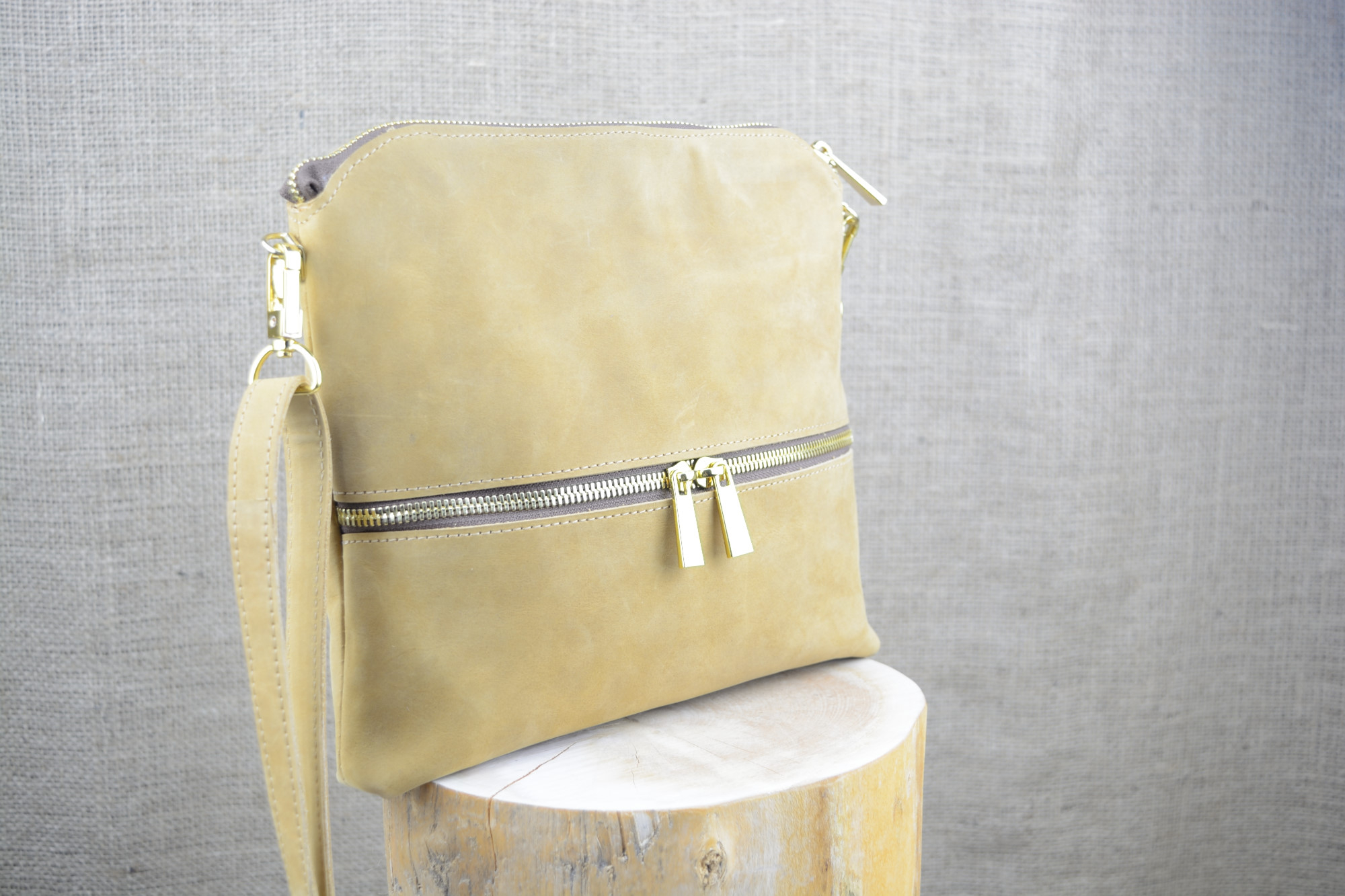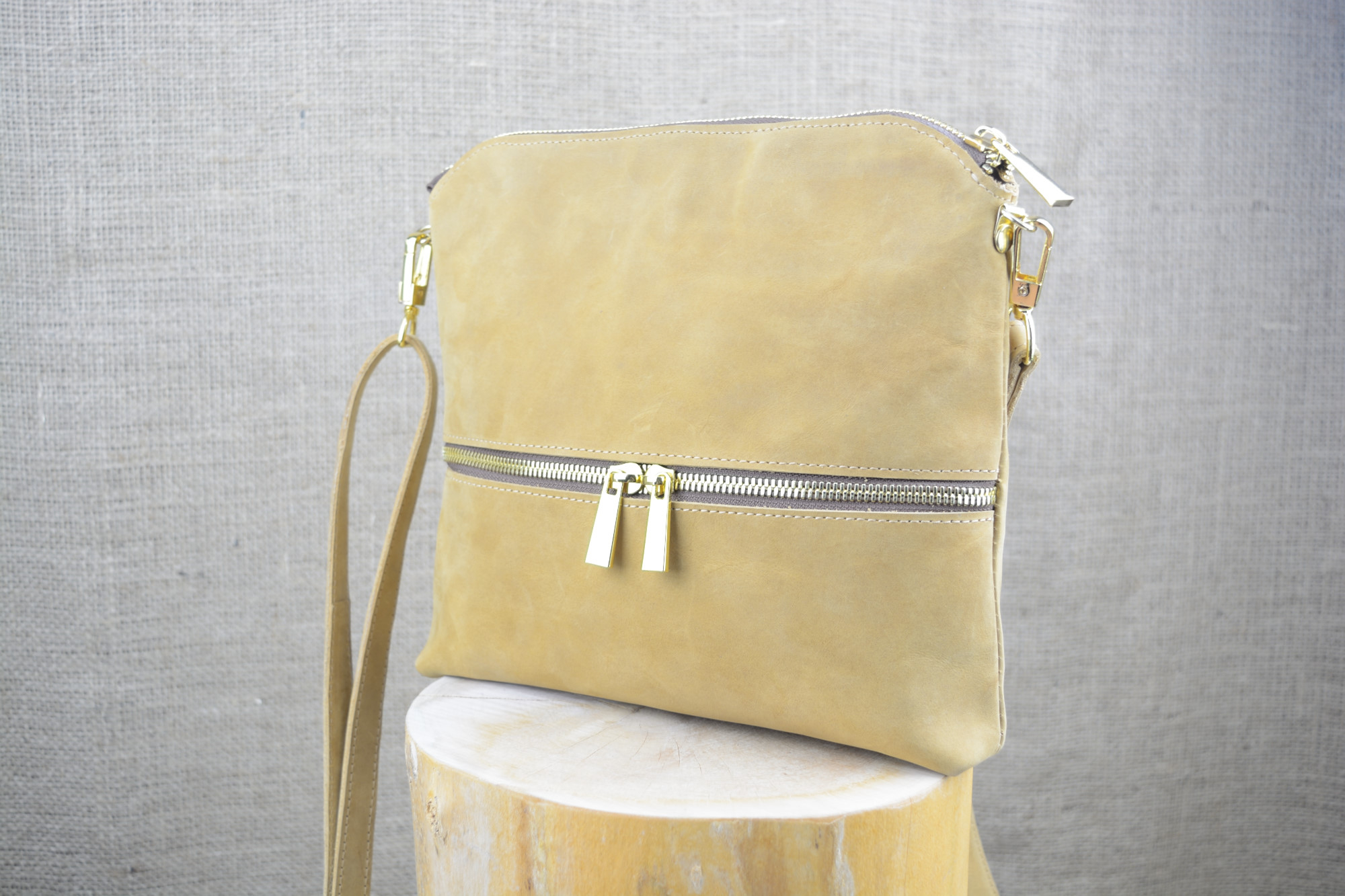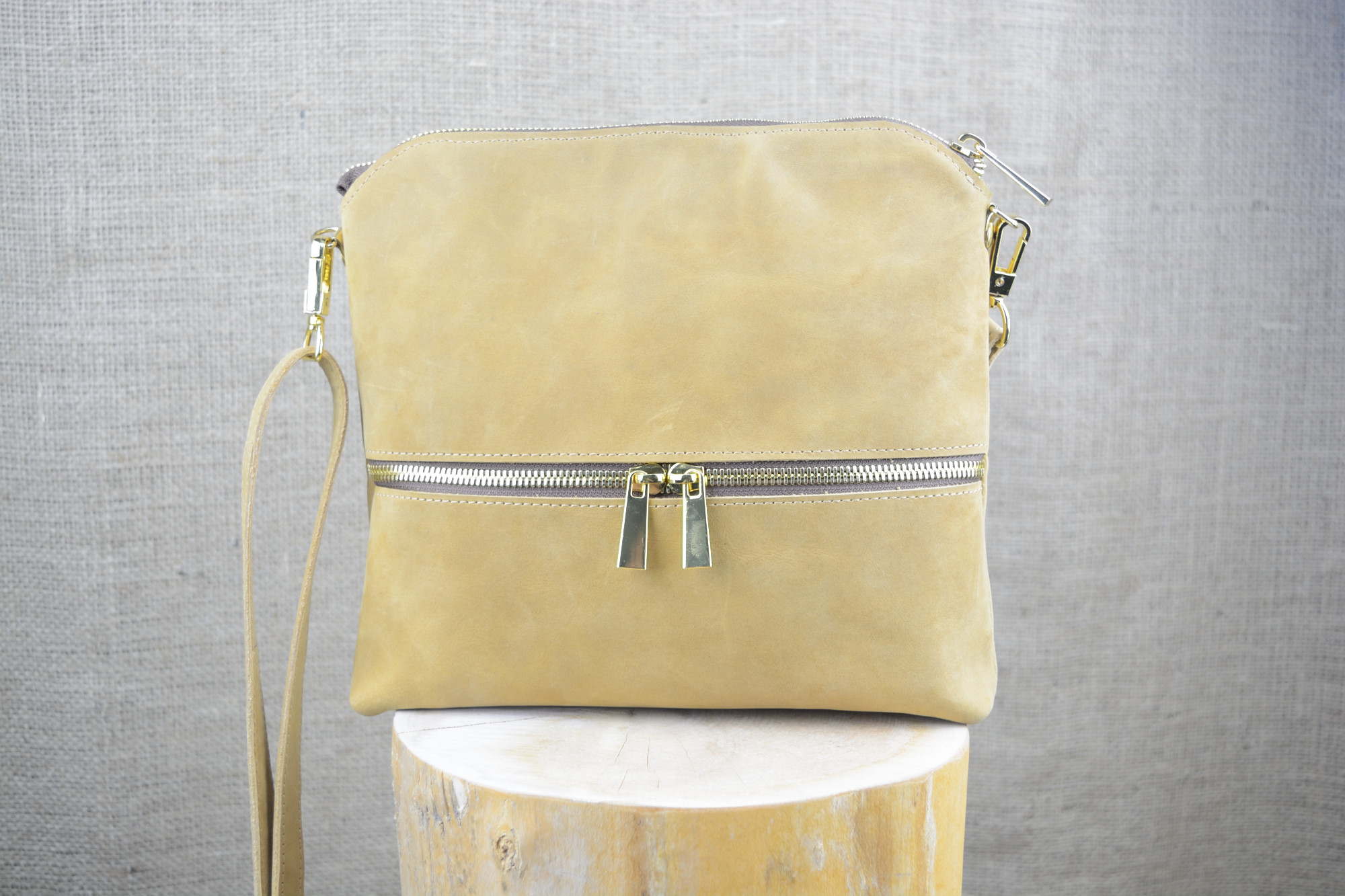 Dámská kožená kabelka Anabela A5 - kvalitní dámská kožená kabelka vyrobená ručně z pravé hovězí kůže. Kabelka se uzavíra zipem a zvenčí na předním díle má jednu ozdobnou funkční zipovou kapsu, která se uzavírá na jeden zip se dvěma jezdci. Zvenčí na zadním díle má kabelka ještě jednu zipovou kapsu. Vevnitř má kožená kabelka pouze jedno hlavní hlavní oddělení. Na předním díle hlavního oddělení se nachází dvě kapsy z podšívky na doklady, mobil, klíče a jiné drobnosti.