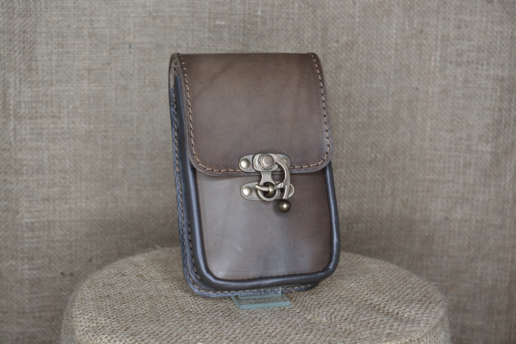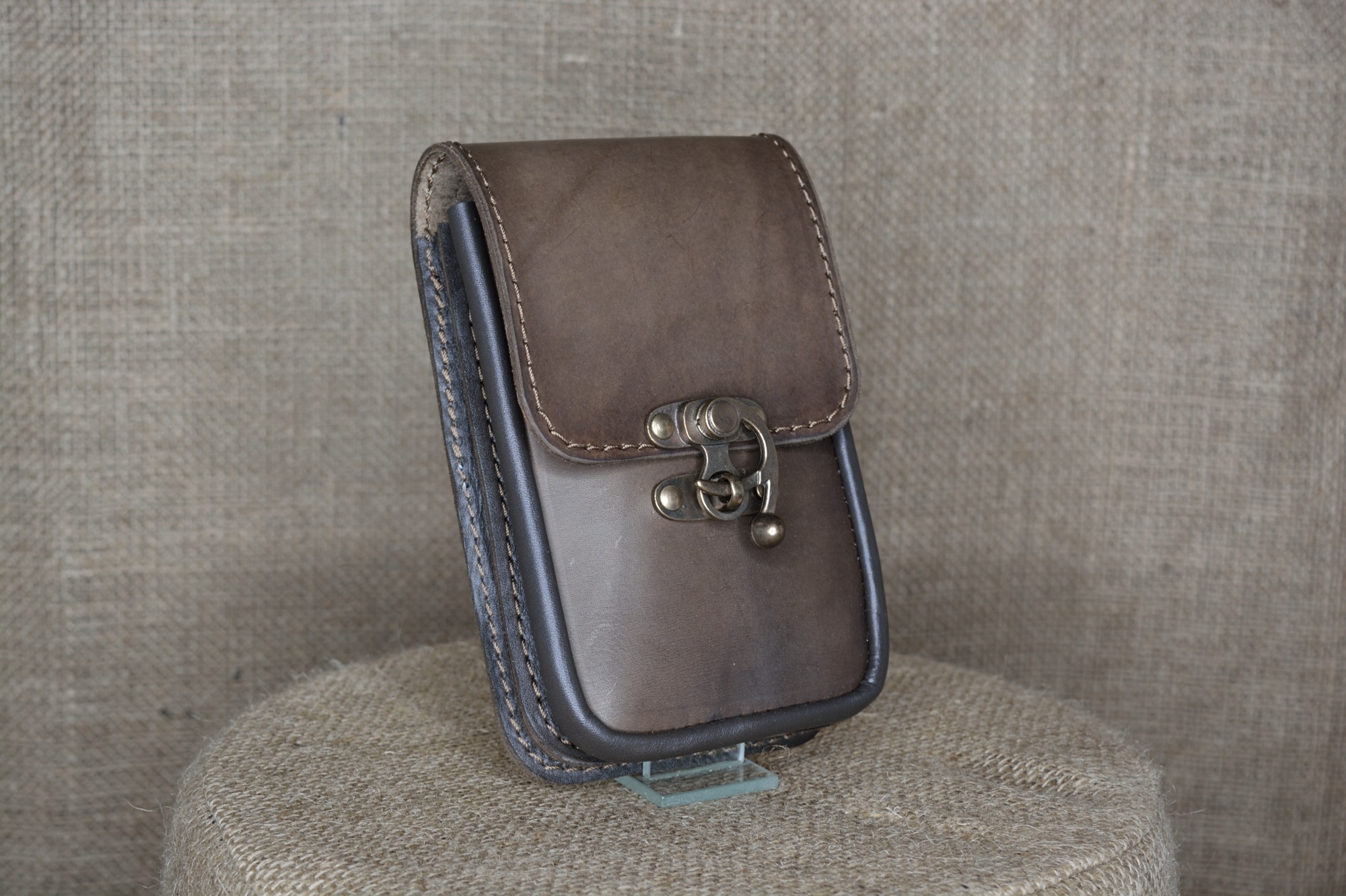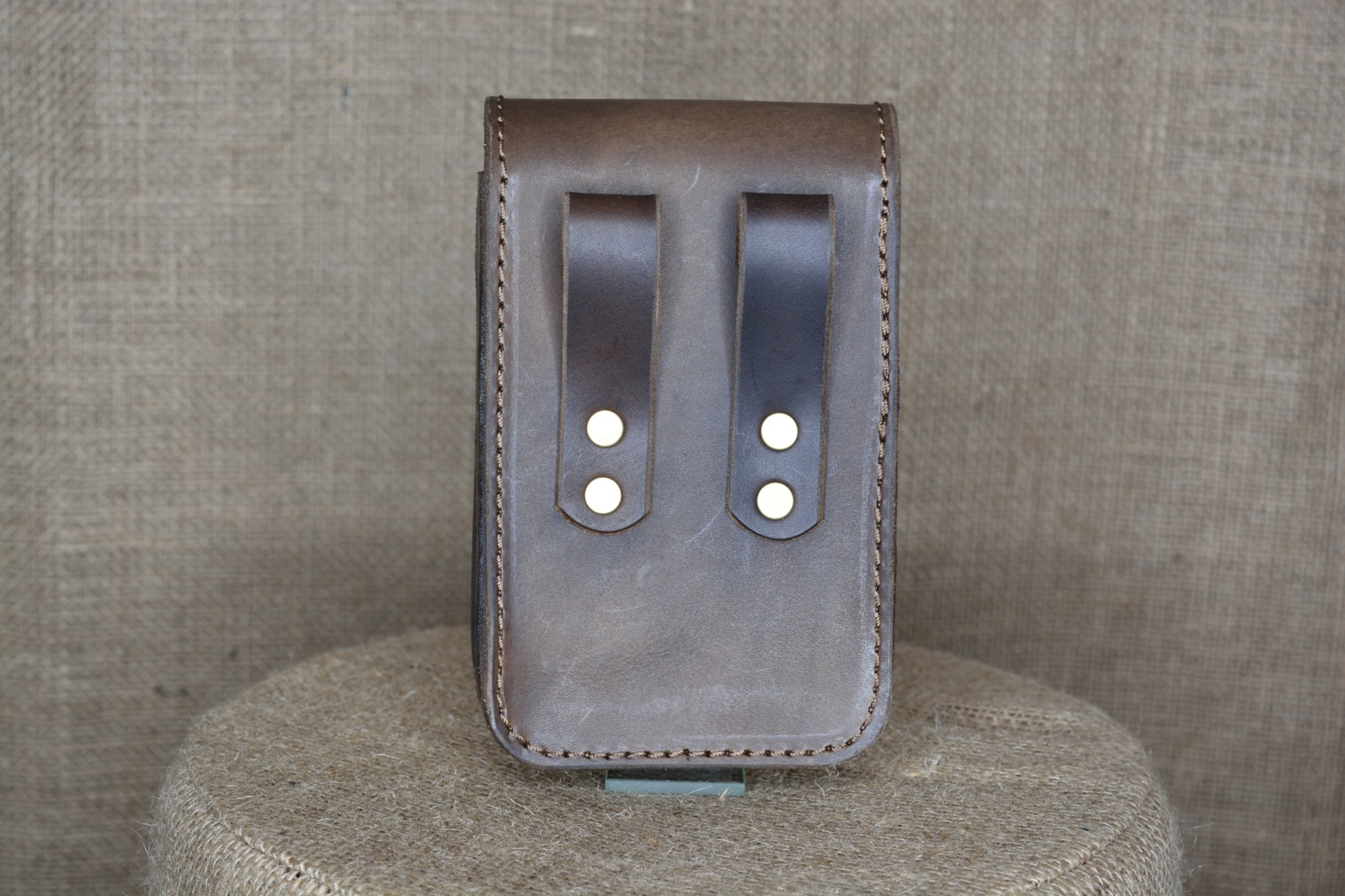 Kožená kapsa dvojitá na výšku na kotvu větší - kvalitní kožená kapsa vyrobená ručně z pravé hovězí kůže. Kožená kapsa se skládá ze dvou přihrádek. Zapínání kapsy je řešeno pomocí kovové kotvičky. Na zadní straně má dvě kožená poutka pro uchycení na opasek.