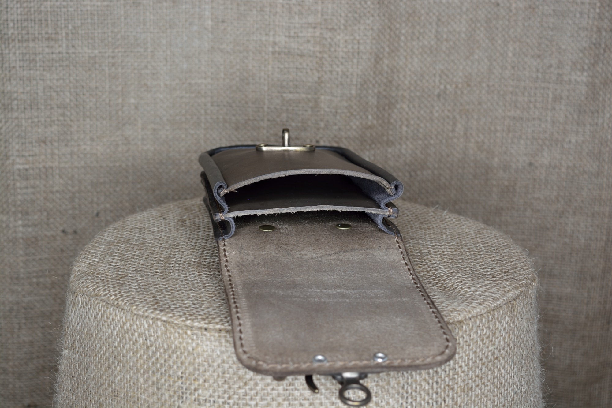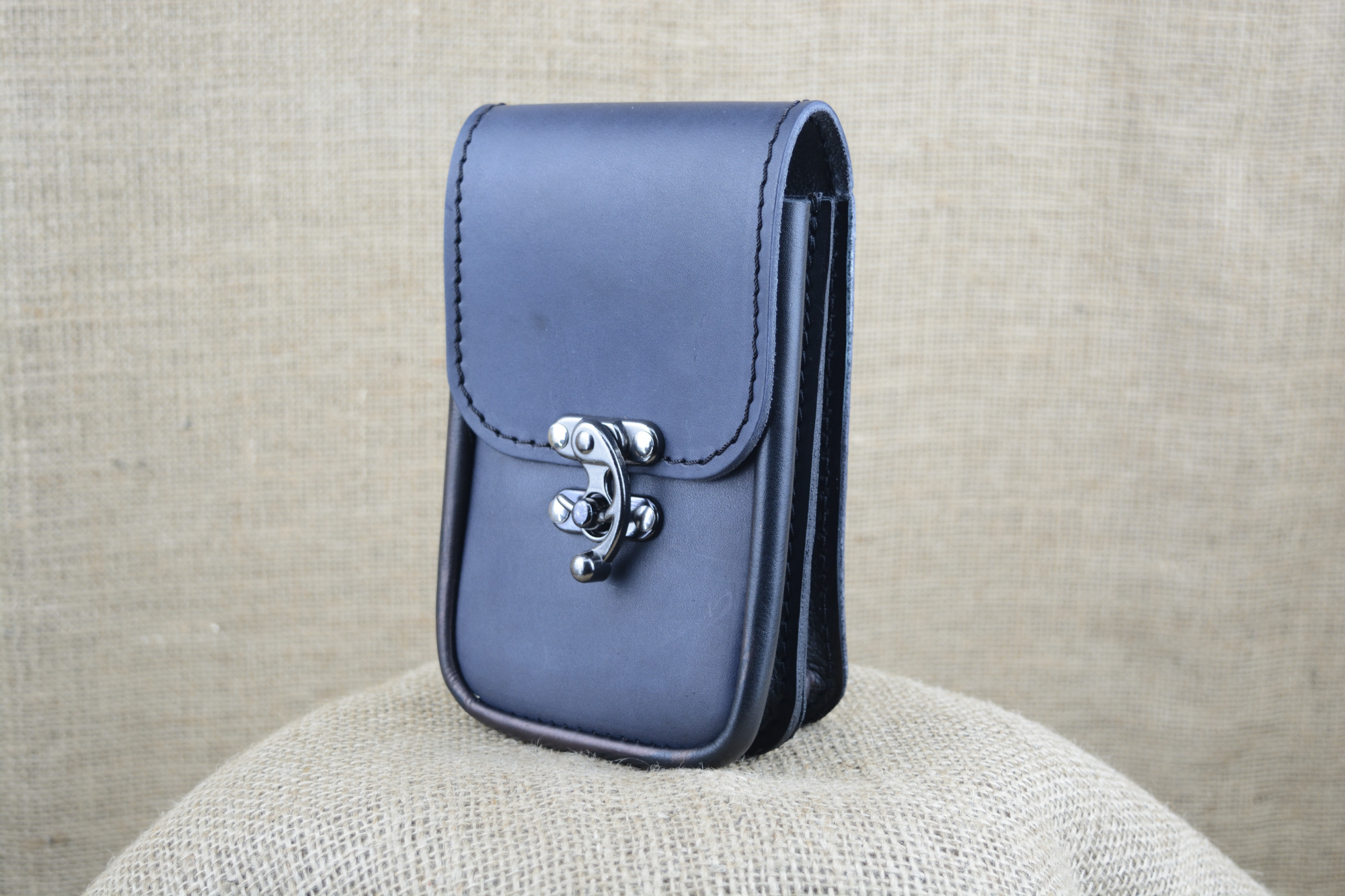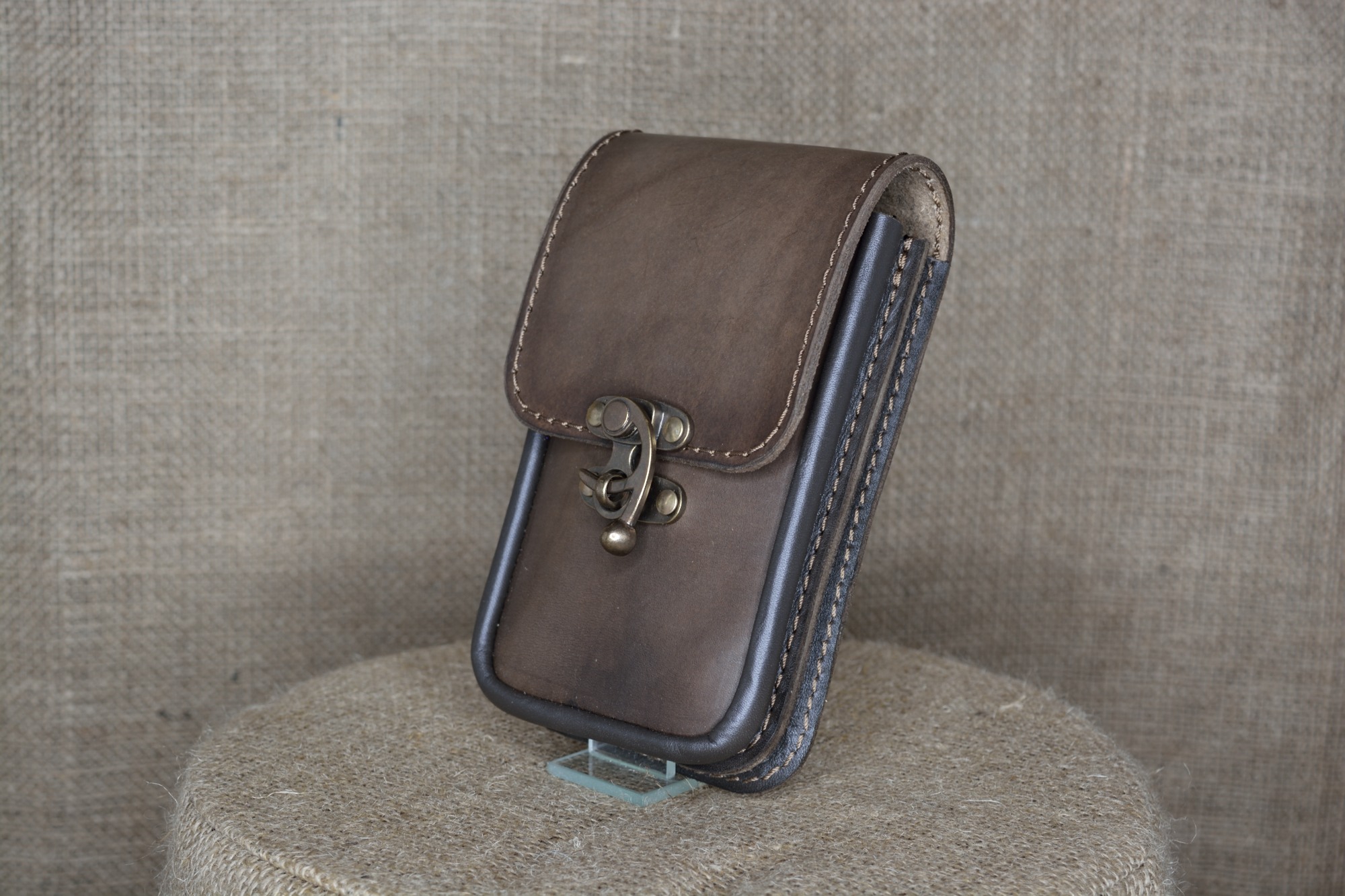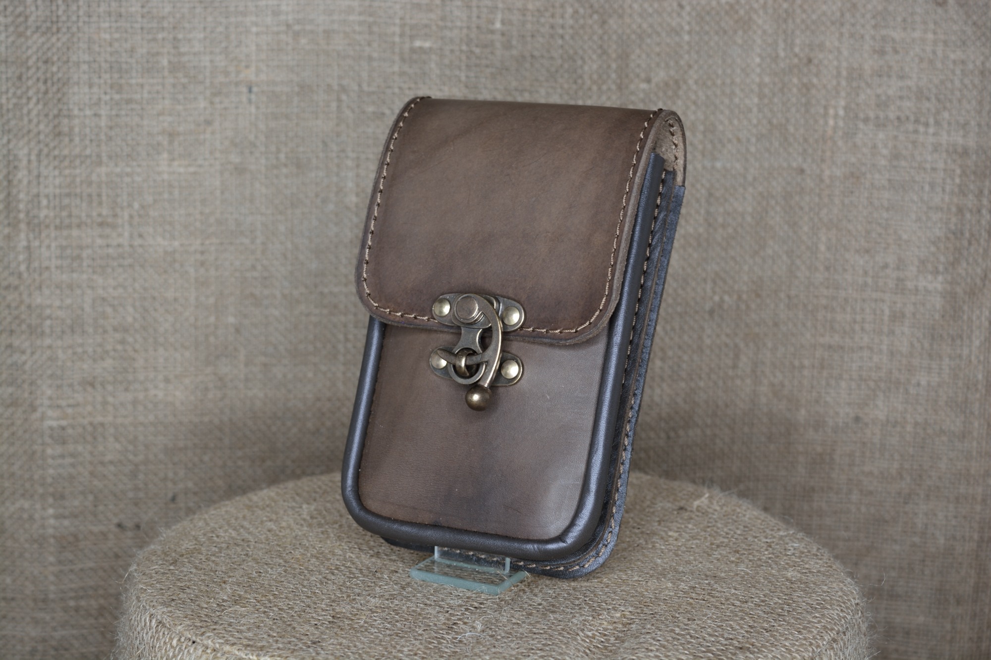 Kožená kapsa dvojitá na výšku na kotvu větší - kvalitní kožená kapsa vyrobená ručně z pravé hovězí kůže. Kožená kapsa se skládá ze dvou přihrádek. Zapínání kapsy je řešeno pomocí kovové kotvičky. Na zadní straně má dvě kožená poutka pro uchycení na opasek.