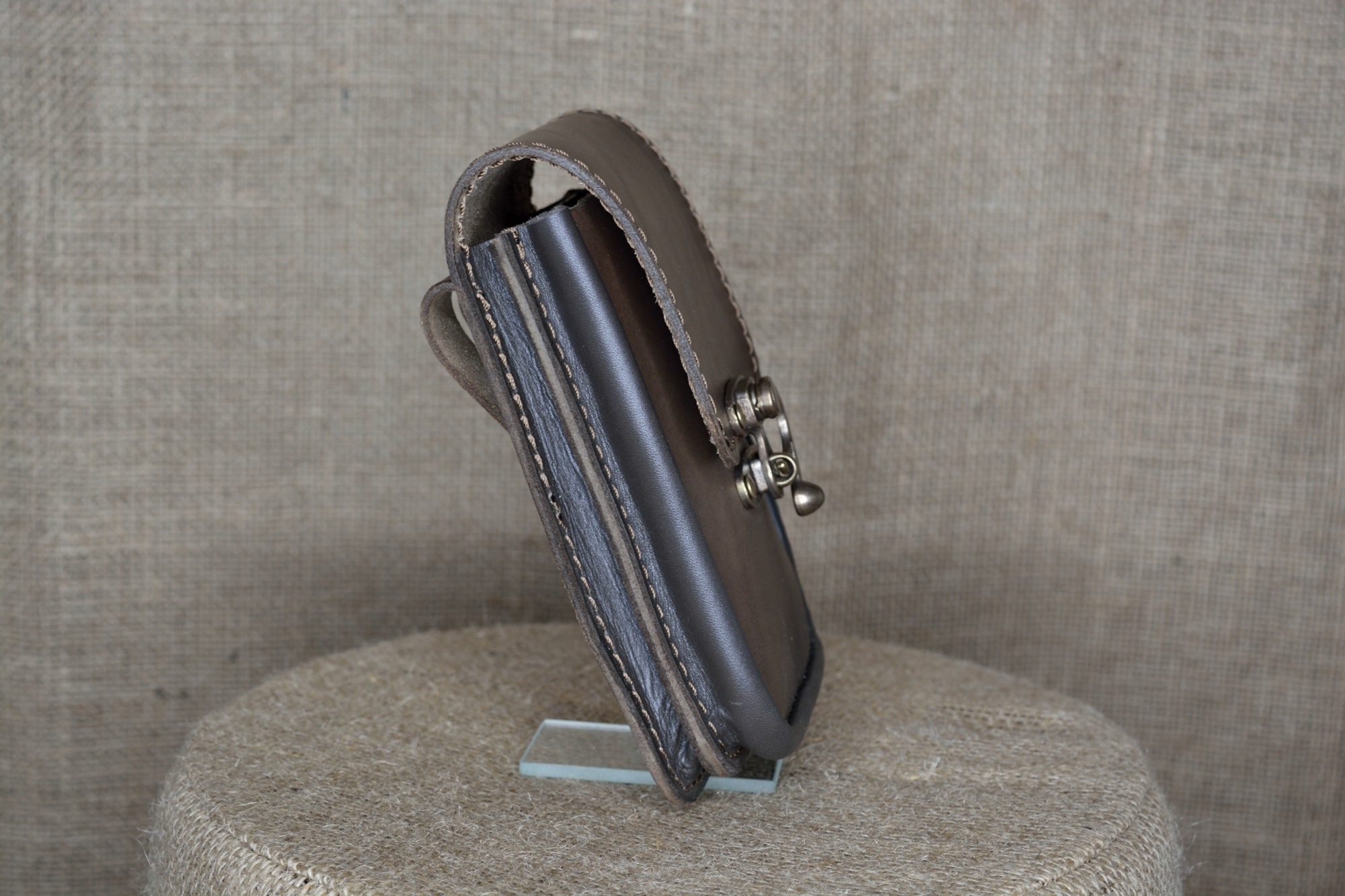 Kožená kapsa má vnitřní rozměry přední foch V 16 cm x Š 9,5 cm x H 3 cm, zadní foch V 16 cm x Š 9,5 cm x H 2 cm.