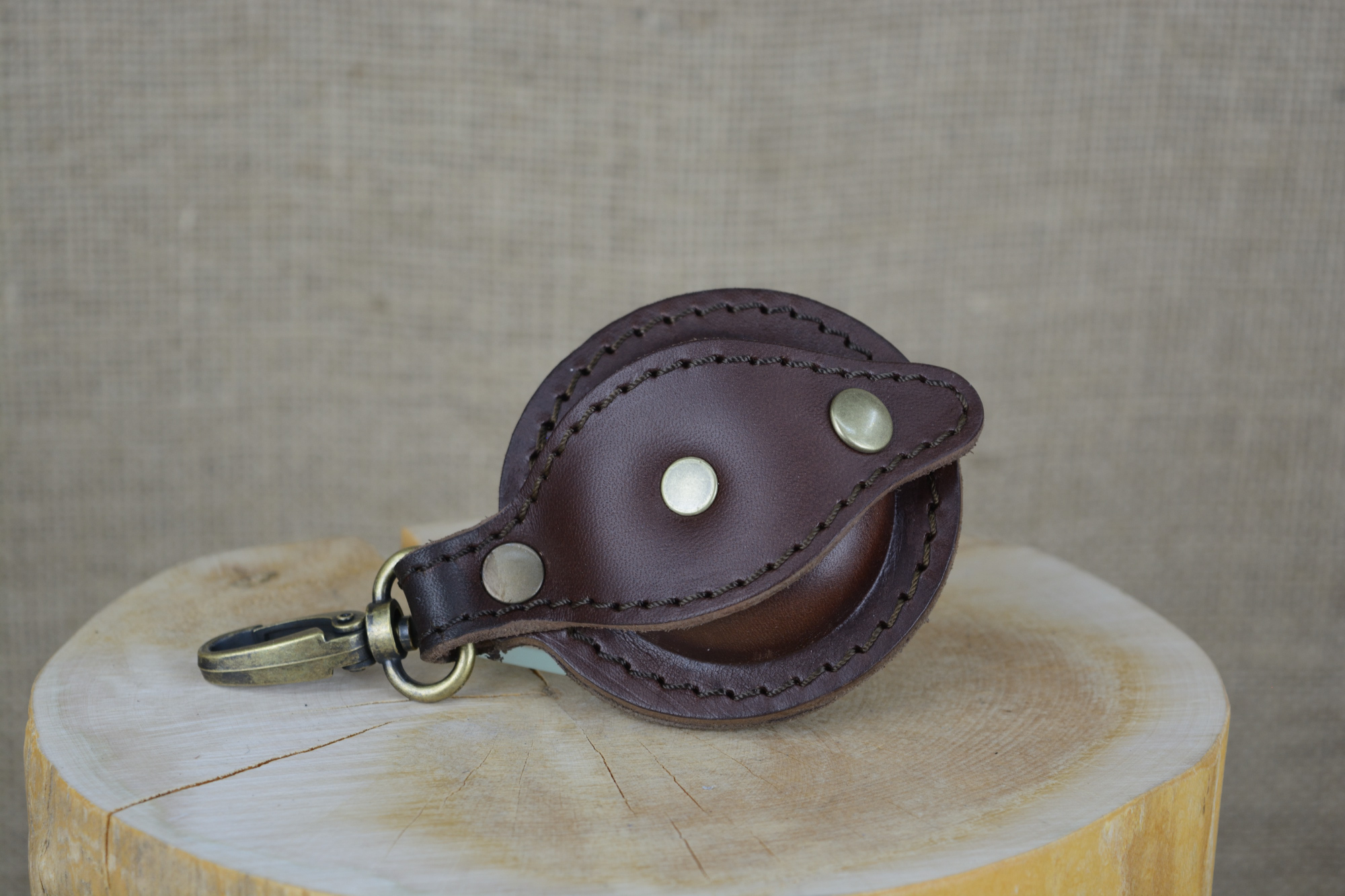 Kožená mincovka kulatá - kvalitní kožené pouzdro na mince vyrobené z pravé hovězí kůže. Mincovka je kulatá, vybavená karabinou pro uchycení a koženým uzávěrem - klapinkou s drukem.