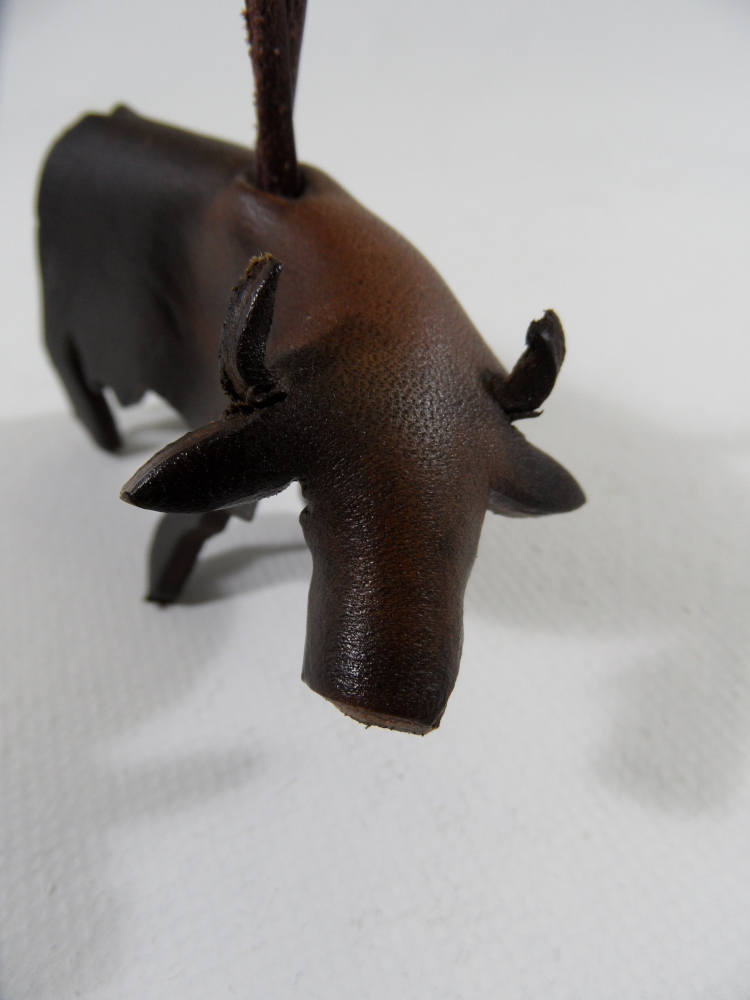 Kožený přívěšek kravička - přívěšek na klíče vyroben z pravé hovězí kůže vhodný jako přívěšek k doplnění svazku klíčů. Je vyroben z tvrdé hovězí kůže. Kožený přívěšek je dodáván s kroužkem na klíče.